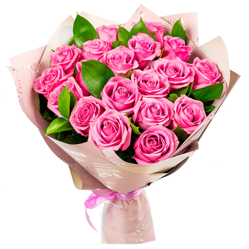 Роза одноголовая розовая, зелень.
